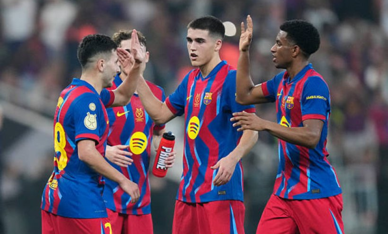 حجز نادي برشلونة بطاقة العبور إلى نهائي كأس السوبر الإسباني، بعدما حقق فوزًا عريضًا على حساب أتلتيك بلباو بنتيجة 5-0، في المواجهة التي جمعتهما ضمن الدور نصف النهائي على ملعب الإنماء.